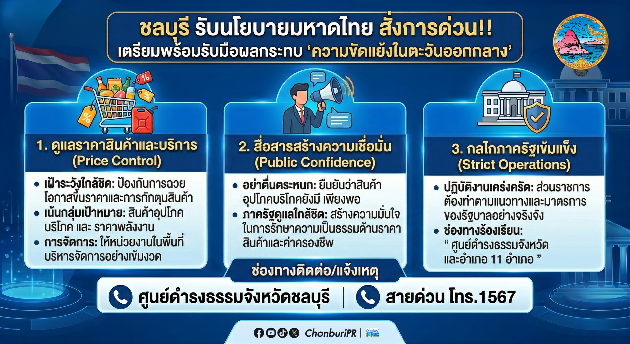 เตรียมพร้อมรับมือผลกระทบจากสถานการณ์ความขัดแย้งในตะวันออกกลาง มุ่งดูแลราคาสินค้า สร้างความเชื่อมั่น และเสริมความเข้มแข็งกลไกภาครัฐ เพื่อความมั่นคงและความเป็นอยู่ของประชาชน