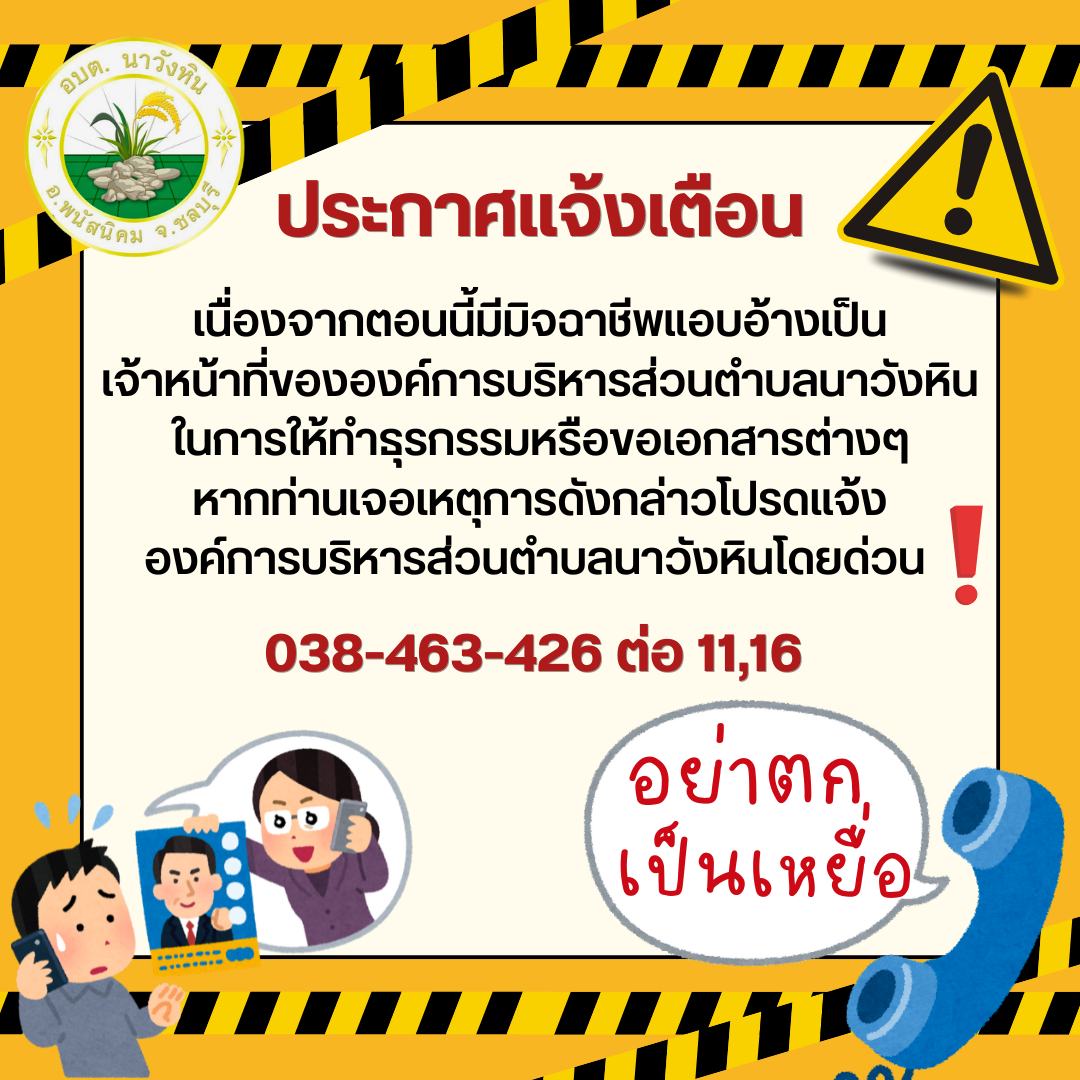 อย่าตกเป็นเหยื่อ!! พบเจอโปรดแจ้ง อบต.นาวังหิน 038-463-426 ต่อ 11 หรือ 16
