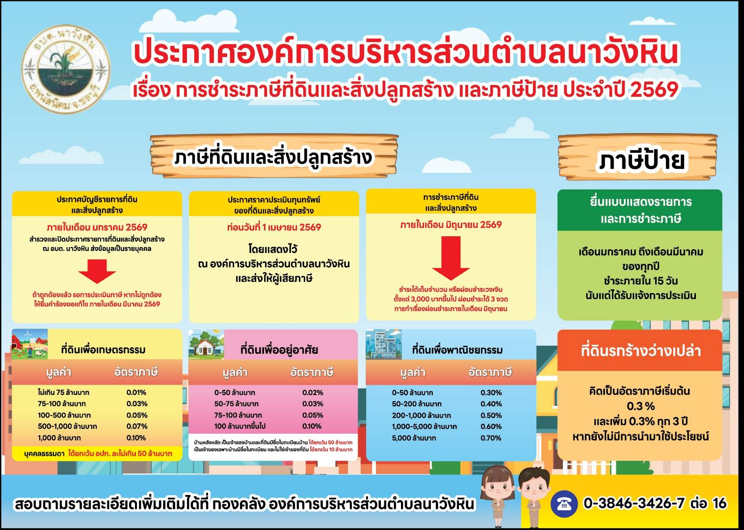 เรื่อง การชำระภาษีที่ดินและสิ่งปลูกสร้าง และภาษีป้าย ประจำปี 2569