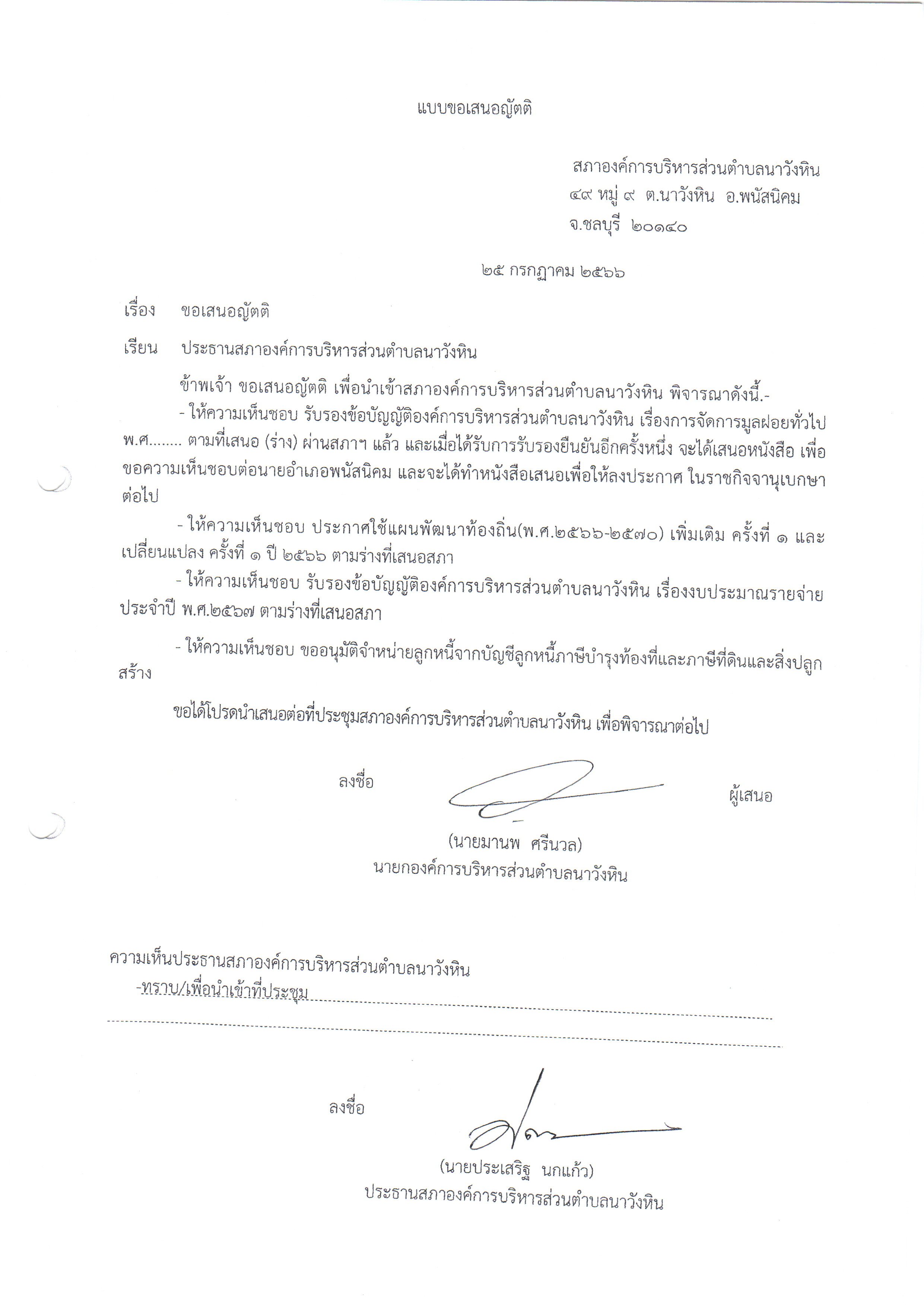 รายงานการประชุมสภาองค์การบริหารส่วนตำบลนาวังหิน ครั้งแรก