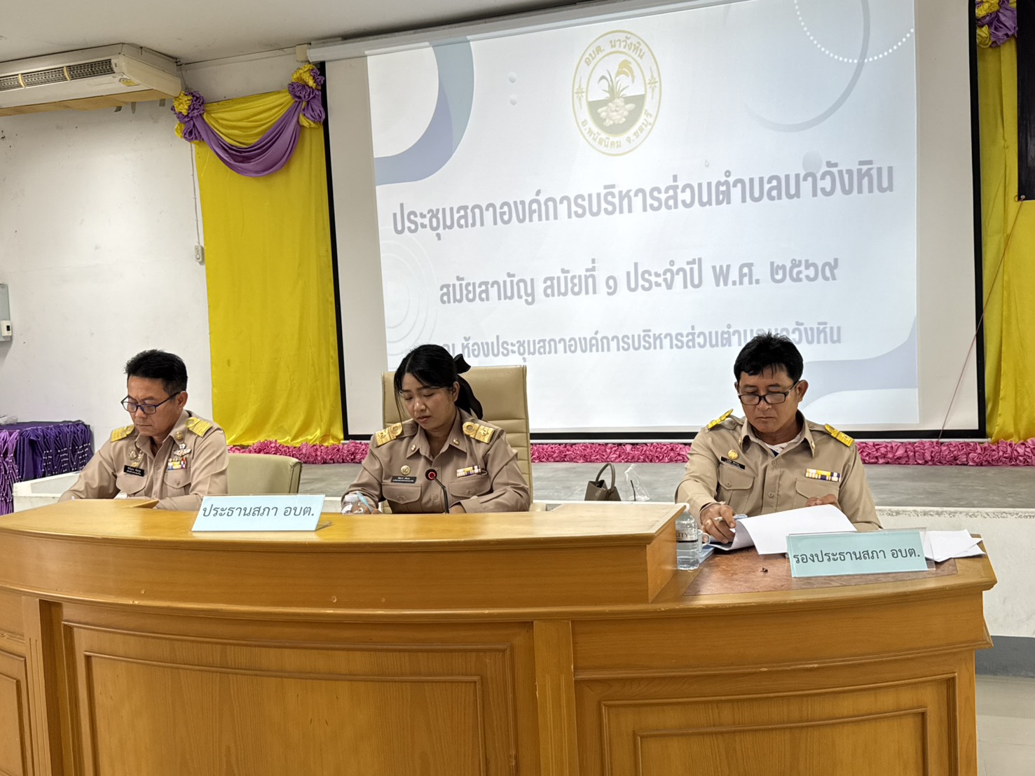 การประชุมสภาองค์การบริหารส่วนตำบลนาวังหิน สมัยสามัญ สมัยที่ ๑ ประจำปี พ.ศ. ๒๕๖๙ ณ ห้องประชุมสภาองค์การบริหารส่วนตำบลนาวังหิน และแถลงนโยบายผู้บริหารองค์การบริหารส่วนตำบลนาวังหิน
