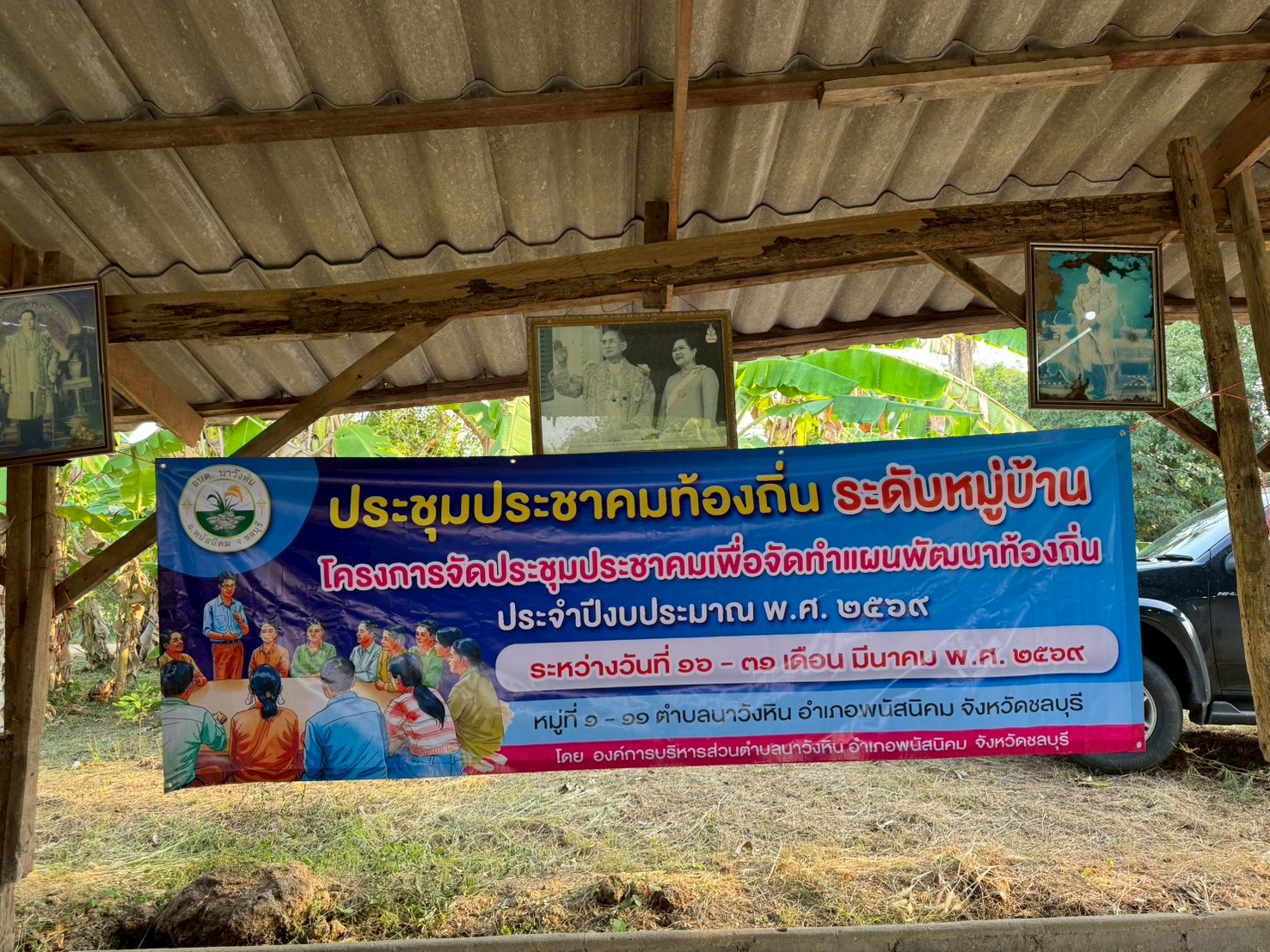 นายมานพ ศรีนวล นายกองค์การบริหารส่วนตำบลนาวังหิน (ประธานคณะกรรมการพัฒนาองค์การบริหารส่วนตำบลนาวังหิน) ,นายชัยภัทร อัญชลี ผู้ใหญ่บ้าน หมู่ที่ 3 (ประธานประชาคม) ,นางสาวลิปิการ์ ศรีนวล ประธานสภาองค์การบริหารส่วนตำบลนาวังหิน ,นายประเสริฐ นกแก้ว สมาชิกสภาองค์การบริหารส่วนตำบลนาวังหิน หมู่ที่ 3 พร้อมด้วย คณะผู้บริหาร เจ้าหน้าที่ อบต.นาวังหิน ประชาชนหมู่ที่ 3 ร่วมการประชาคมระดับหมู่บ้านระดับตำบล เพื่อจัดทำแผนพัฒนาท้องถิ่น ประจำปีงบประมาณ พ.ศ. 2569 พร้อมรับชำระภาษีและค่าธรรมเนียมต่างๆนอกสถานที่ ณ ศาลาเอนกประสงค์บ้านทุ่งแฝก หมู่ที่ 3 บ้านทุ่งแฝก ตำบลนาวังหิน อำเภอพนัสนิคม จังหวัดชลบุรี