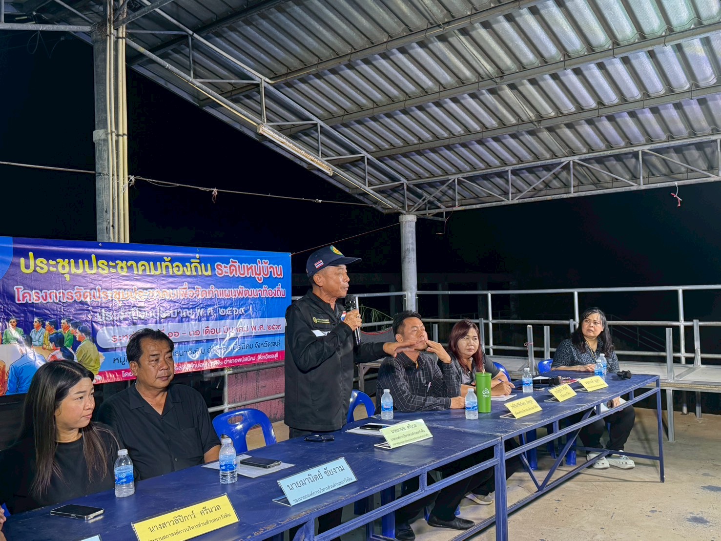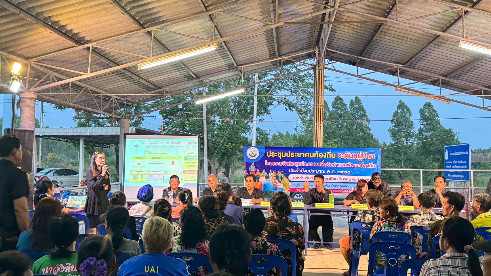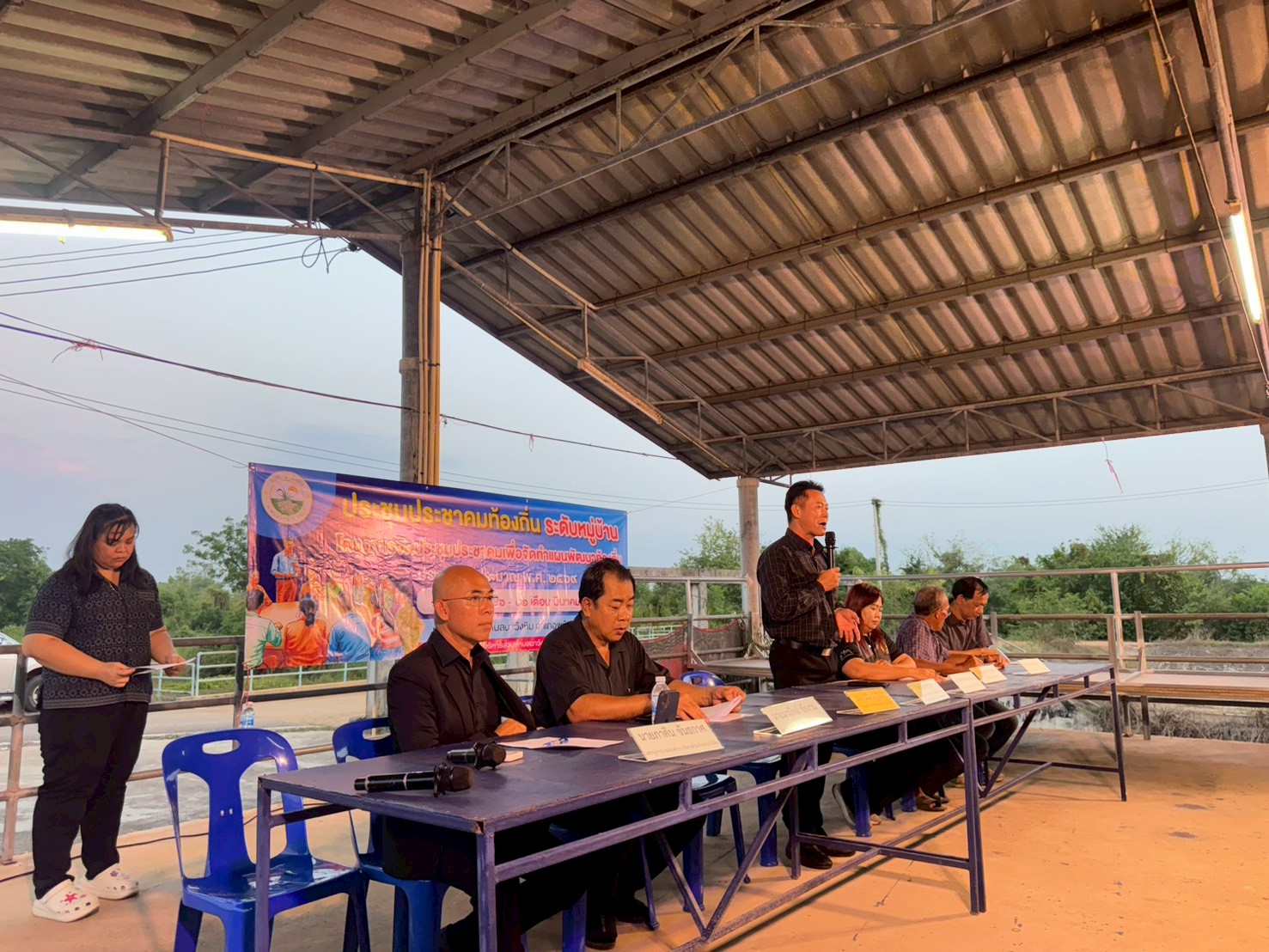 นายมานพ ศรีนวล นายกองค์การบริหารส่วนตำบลนาวังหิน (ประธานคณะกรรมการพัฒนาองค์การบริหารส่วนตำบลนาวังหิน) ,นางณัฐชนิกา คำสิงห์ กำนันตำบลนาวังหิน (ประธานประชาคม) ,นางสาวลิปิการ์ ศรีนวล ประธานสภาองค์การบริหารส่วนตำบลนาวังหิน ,นายสวรรค์ บุญทา สมาชิกสภาองค์การบริหารส่วนตำบลนาวังหิน หมู่ที่ 4 พร้อมด้วย คณะผู้บริหาร เจ้าหน้าที่ อบต.นาวังหิน ประชาชนหมู่ที่ 4 ร่วมการประชาคมระดับหมู่บ้านระดับตำบล เพื่อจัดทำแผนพัฒนาท้องถิ่น ประจำปีงบประมาณ พ.ศ. 2569 พร้อมรับชำระภาษีและค่าธรรมเนียมต่างๆนอกสถานที่ ณ ศาลาฝายคลองม่วง หมู่ที่ 4 บ้านอีโค้ ตำบลนาวังหิน อำเภอพนัสนิคม จังหวัดชลบุรี