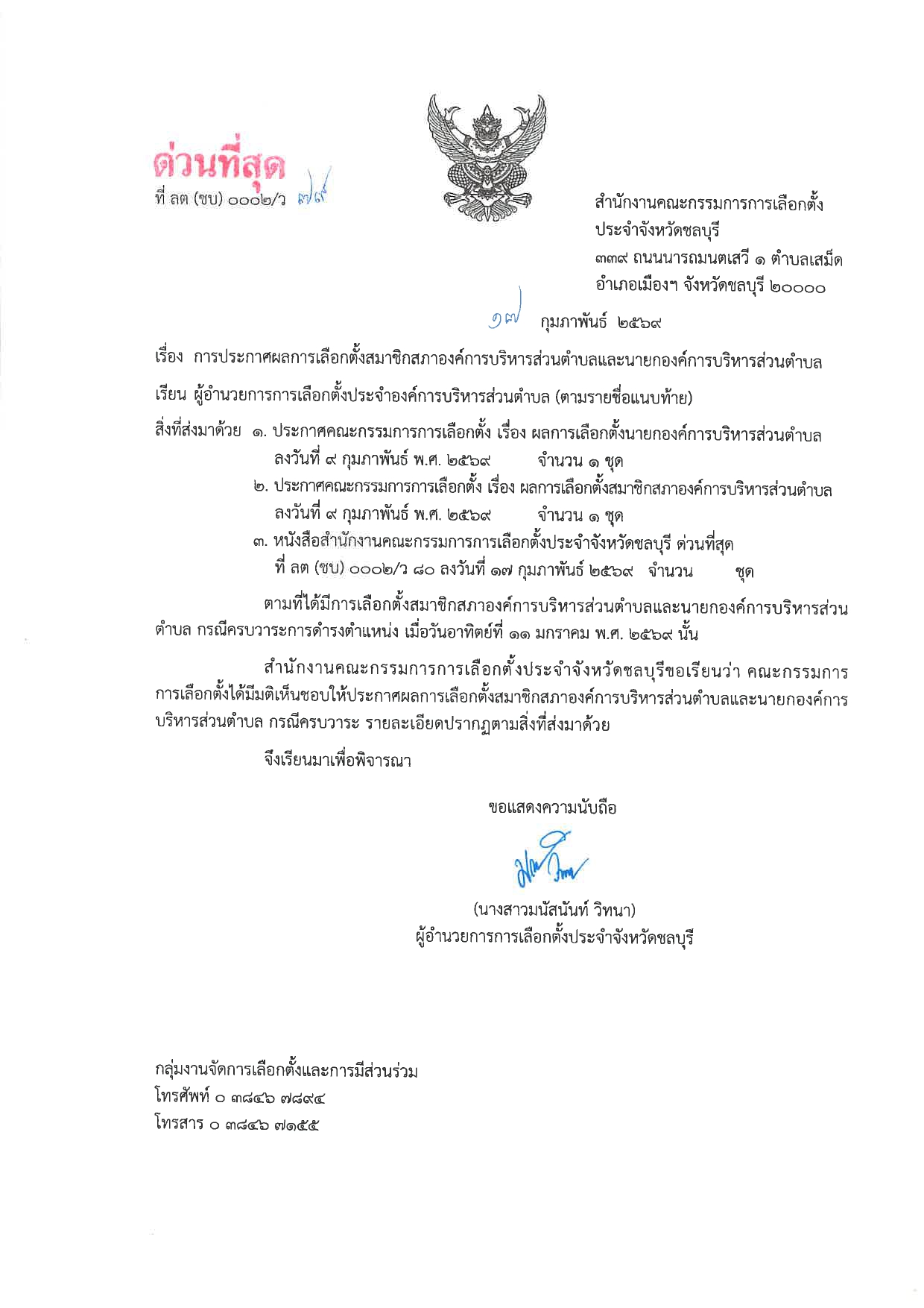 ประกาศผลการเลือกตั้งสมาชิกสภาองค์การบริหารส่วนตำบล อำเภอพนัสนิคม จังหวัดชลบุรี