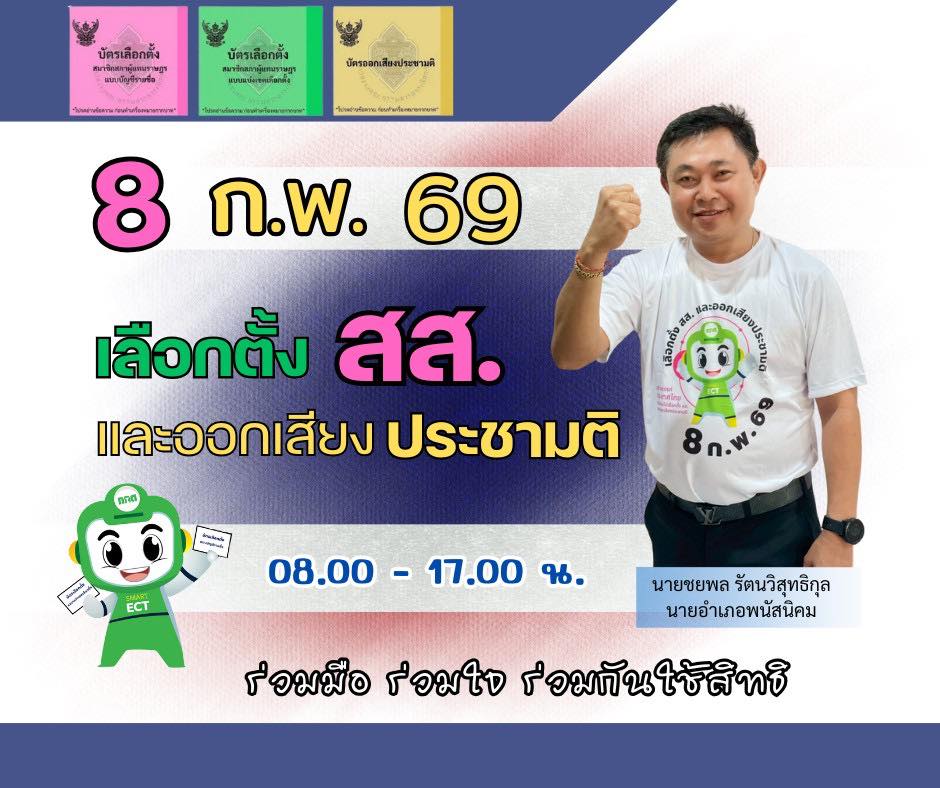 ขอเชิญชวนทุกท่าน ร่วมมือ ร่วมใจ ร่วมกันออกมา ใช้สิทธิเลือกตั้ง ในวันที่ 8 กุมภาพันธ์ 2569