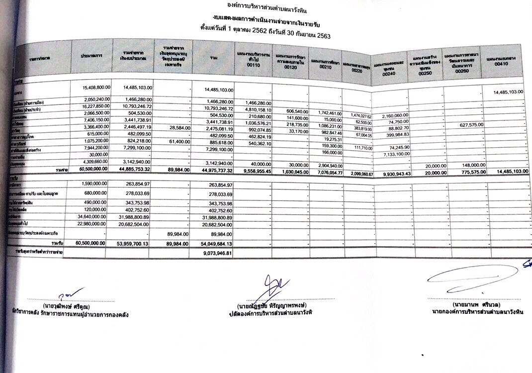 รายงานผลการใช้จ่ายเงินงบประมาณประจำปี 2563